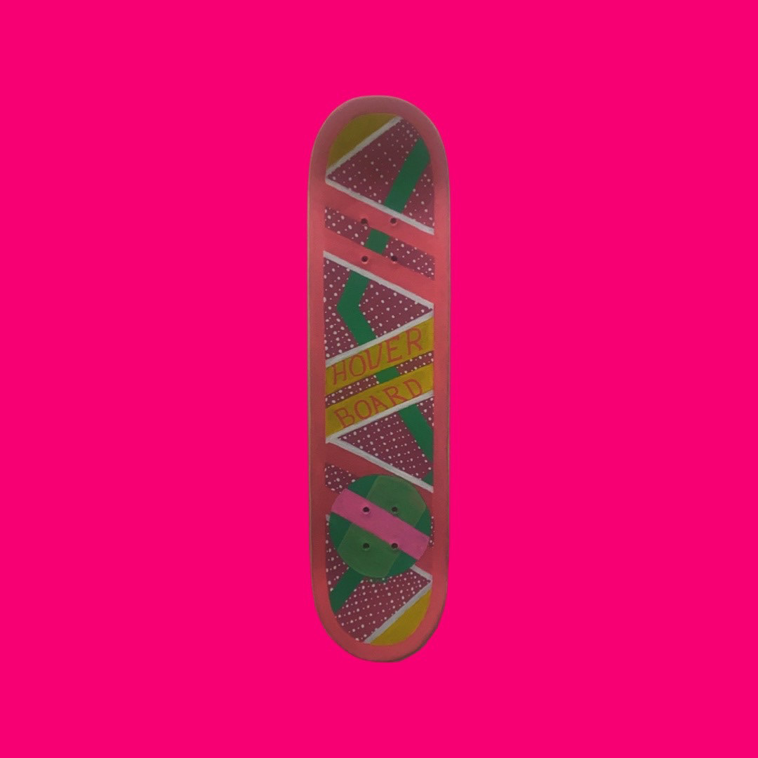 This hoverboard griptape will send you flying through Hill Valley. No need for the DeLorean when you have this. Acrylic paint on MOB Grip.