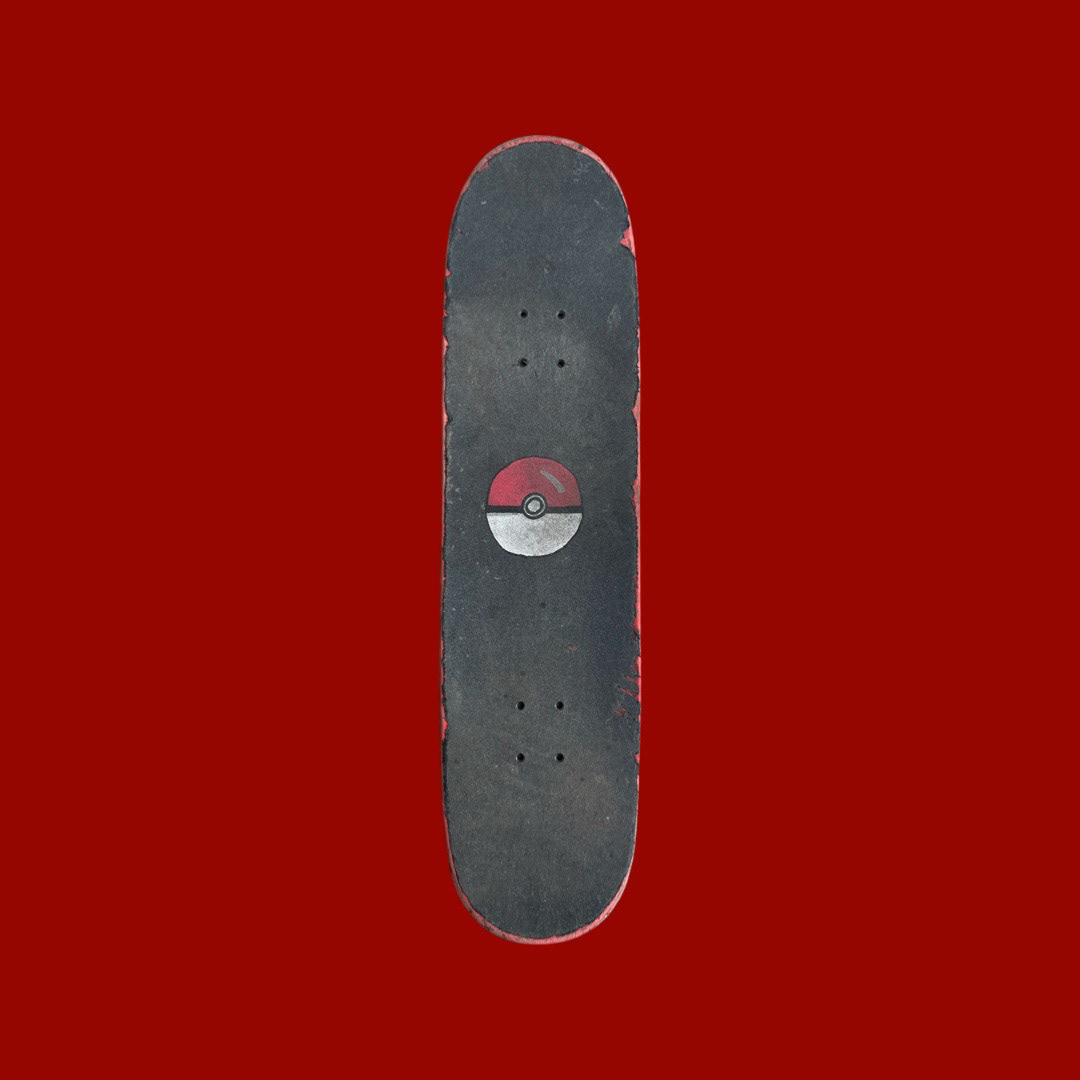 This board was shredded to bits, but the graphic still stands. Just like my Pokémon after every battle. Acrylic paint on MOB Grip.